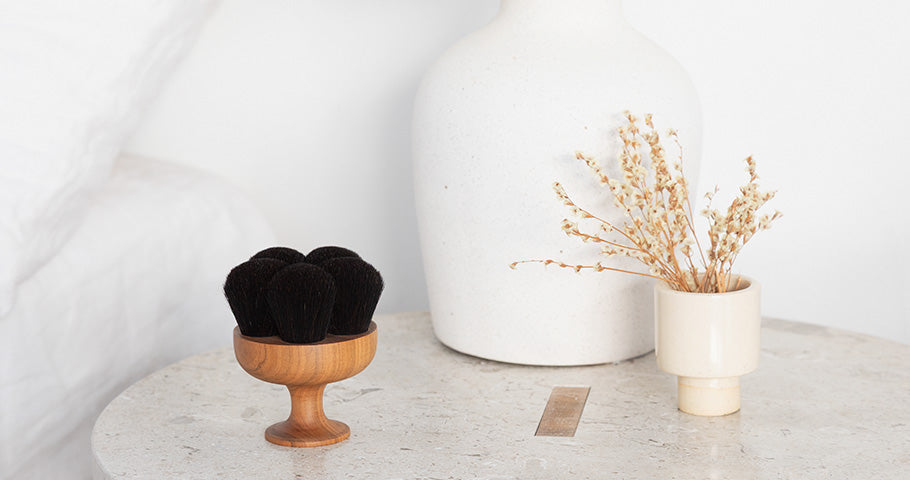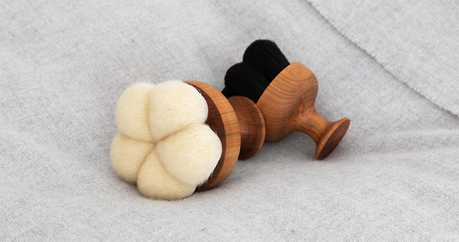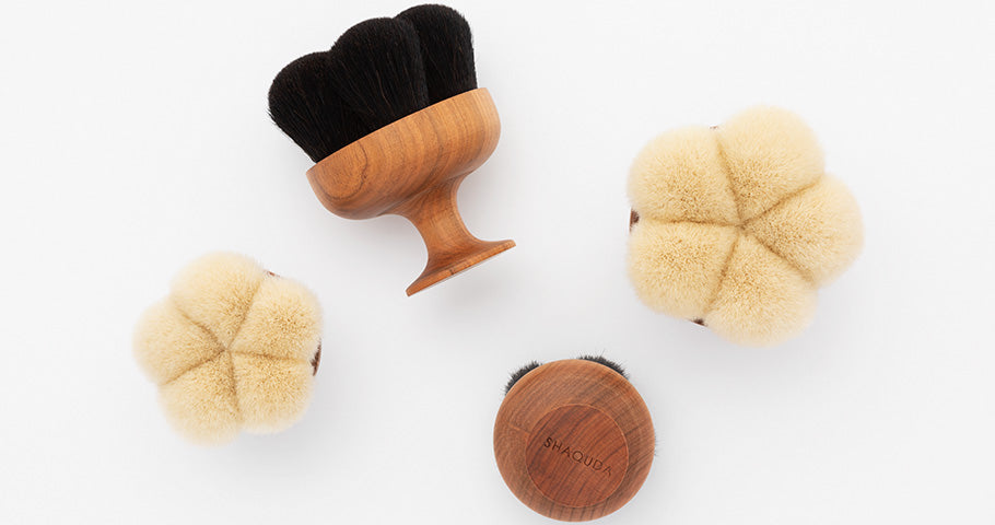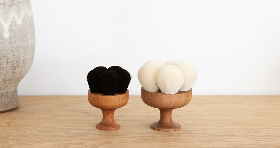 ⼭⽺⽑メインのソフトタイプ・Iyashi Brushはフェイシャルやデコルテなど繊細な部位に、豚⽑メインのハードタイプ・Meguri Brushはボディケアに。濡らして使用すれば天然毛が毛穴の汚れまで働きかけ、つるりと洗い上げます。衛生的な保管が可能な吊るし紐付きです。