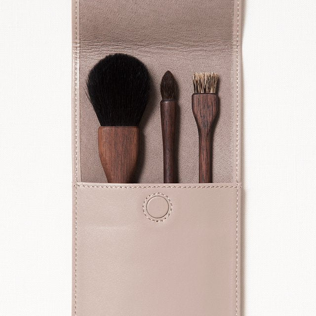 A larger version of our CA1. Genuine Leather brush case molds to brush shape as you use it. Lined with swine leather for smooth insertion, storing 3 to 5 brushes. Simple functionality, design and genuine leather add joy and elegance to your precious brushes.