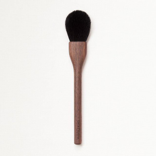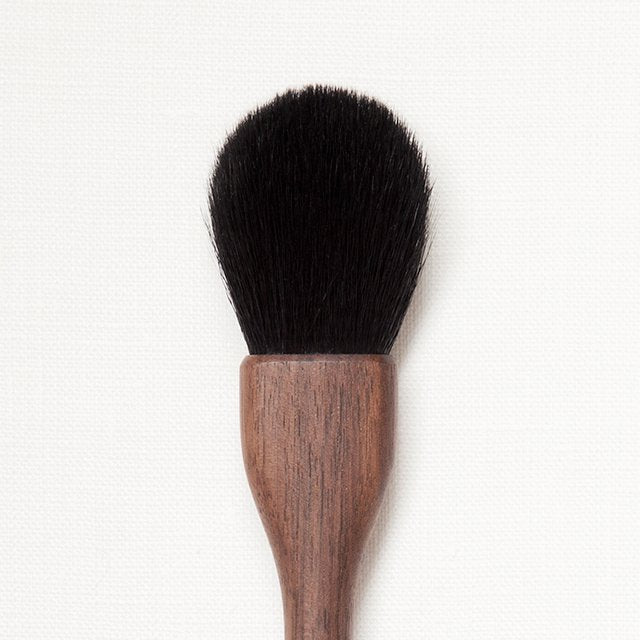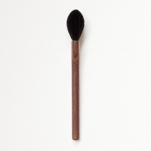 Slightly honed shape of the Blooming face Brush that colors your skin brightly. Soft supple goat hair allows for exceptional blush powder application and airy glamorous color.