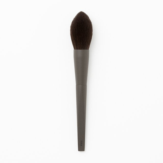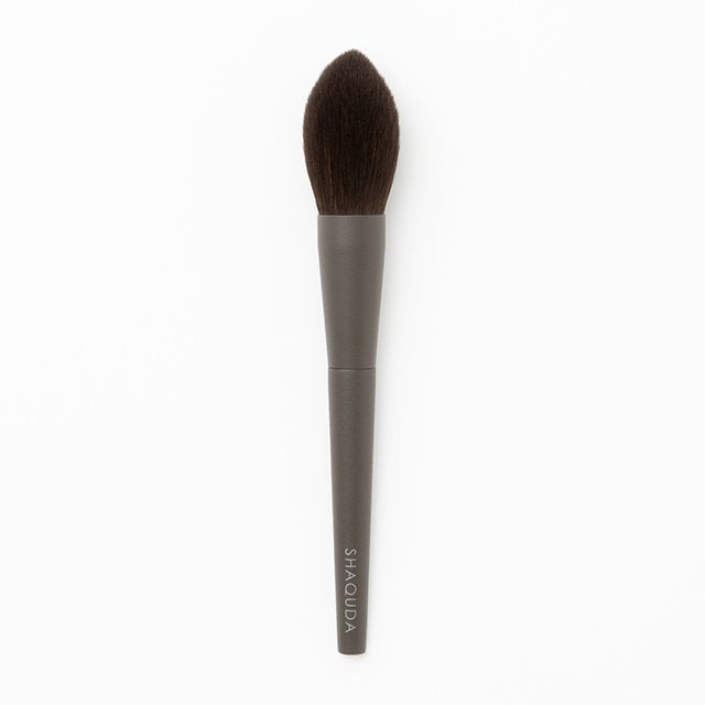 シャクダオリジナルの人工毛をたっぷりと用い、ロウソク型のフォルムに穂先を整えたフェイスブラッシュ。肌あたりもよく、ふんわりと軽い透明感のある肌に仕上げます。ファンデーションはもちろん、チークやシェイディング、ハイライトなどマルチに使えます。ハンドルの裏面には、置いた時に転びにくいシャープなカットを施しています。
